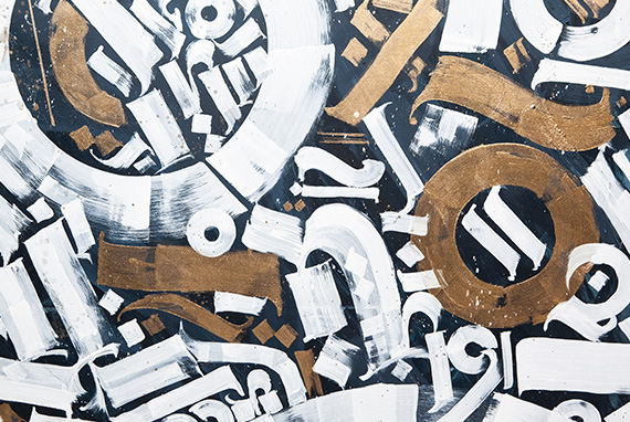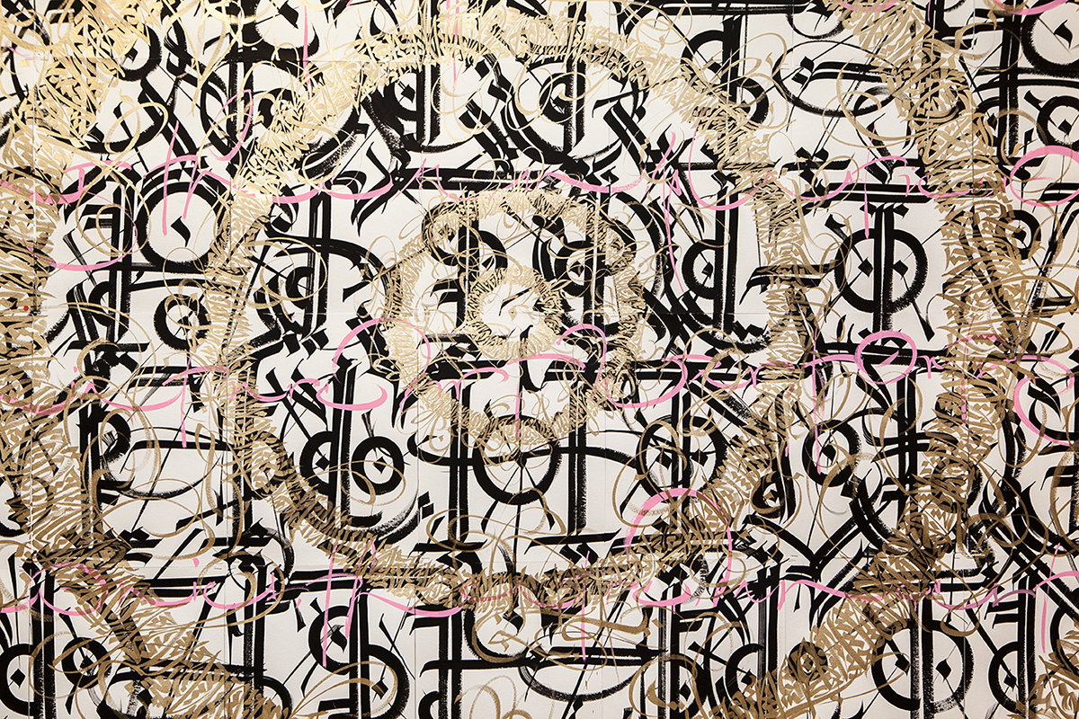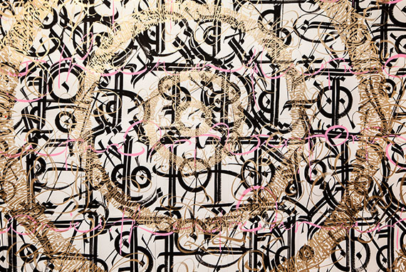 Calligraffiti is a jiggy typographical way which comes in many forms: inspired by Japanese ancient brush characters up to Arabic pictorial scripts, but always mixed with a little bit of street. Ironically it’s a new way of doing graffiti, but at the same time reminds us of the beginnings of handwriting. The forms may differ, but the art pieces have one thing in common: they all look dope. And pieces of pure dopeness is what you can see during „Calligraffiti Ambassadors“. The legendary artist Niels “Shoe” Meulman, also founder of the title calligraffiti, has chosen 25 international artists as ambassadors, who represent this artform, beginning at the exhibition at Affenfaust Gallery. No better location to feature urban art with calligrafitti arists from all over the world than in a former supermarket.